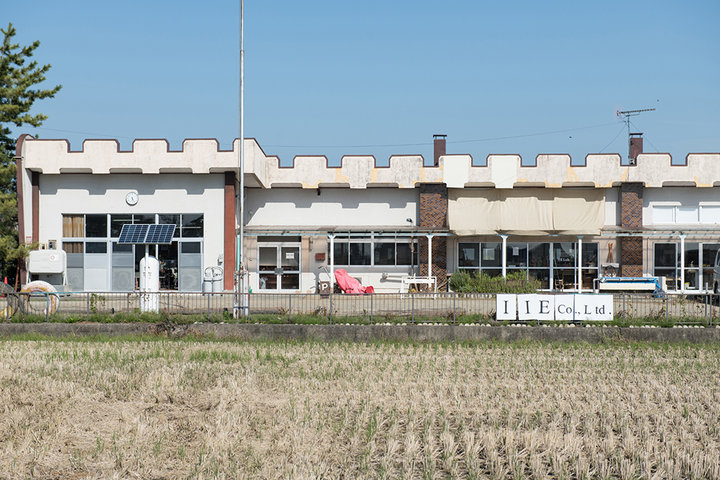 稲を刈り取った後の田んぼの中に佇む『IIE Lab.』。夏の田植えシーズンや実りの季節にも訪ねてみたい。