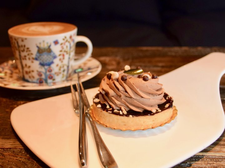 「タルトショコラ」(600円)と「カフェ・ラテ」(600円)