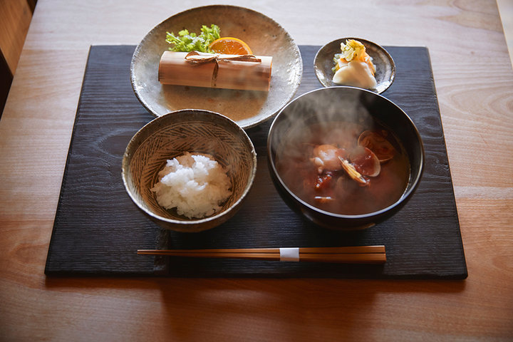 『朝食喜心 kyoto』の食事を監修したのは、京都の名店『草喰なかひがし』に生まれ、「一飯一汁(いっぱんいちじゅう/One Rice One Soup)」という日本の食の真髄を提唱するプロジェクトを主催している中東篤志(なかひがし あつし)氏です。シンプルでいて、食の本質を感じられるメニューを提供しています。