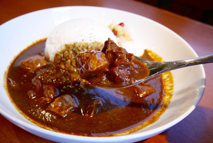 野菜とひき肉をじっくり煮詰めた「ドライキーマカレー」と、国産牛すじ肉のスープをベースとした「ビーフカレー」。この2つのカレーが同時に楽しめるのが「GODカレー」です。 ドライキーマカレーはレーズンと蜂蜜が入っており、初めは甘口に感じますが後からスパイスの辛さがやってきます。対してビーフカレールウは重厚かつおだやかな味。それぞれ別に食べたり混ぜて食べたり、1皿でいろいろな味わい方ができます。