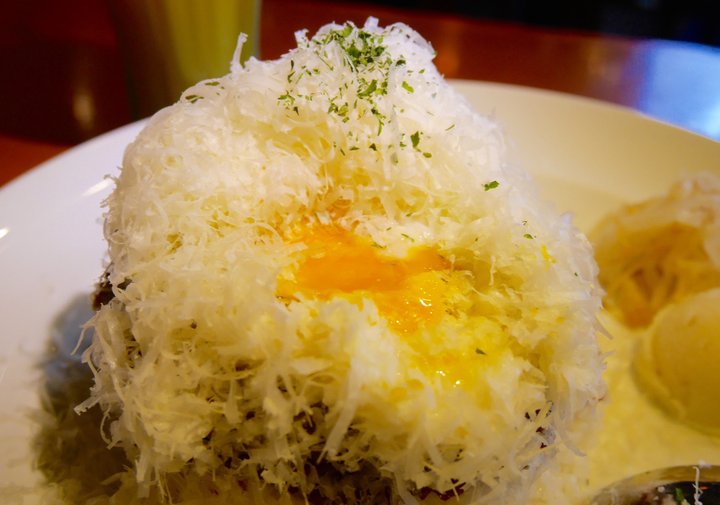 雪山のようなチーズの中から温玉がとろ〜り。ランチタイム限定オープンの吉祥寺「カレーハウスゴッド」