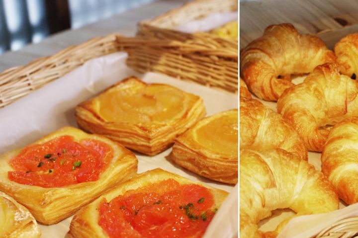 靴をぬいで店内に上がると、パンのいいにおいに包まれ、ほんわり幸せな気分に。 パンコーナーには、本格的な石窯で焼く石窯パンをはじめ、毎日、北山の「ラミデュパン」や東山の「ルバカサブル」のふたつのブランジュリーの工房から届くハード系とデニッシュ系のパンが約20種ほど並べられています。 パンは身近なものだから毎日買えるものをと、クロワッサンが130円~とお手頃価格。デニッシュ系のパンはすべて200円で、フルーツたっぷりのスイーツ系からサーモンクリームチーズ、きのこチーズなどの惣菜系まで多彩に揃います。キャラメルなど小菓子のほか、ガラス瓶やバスケットなどセンスの良い雑貨も販売しています。