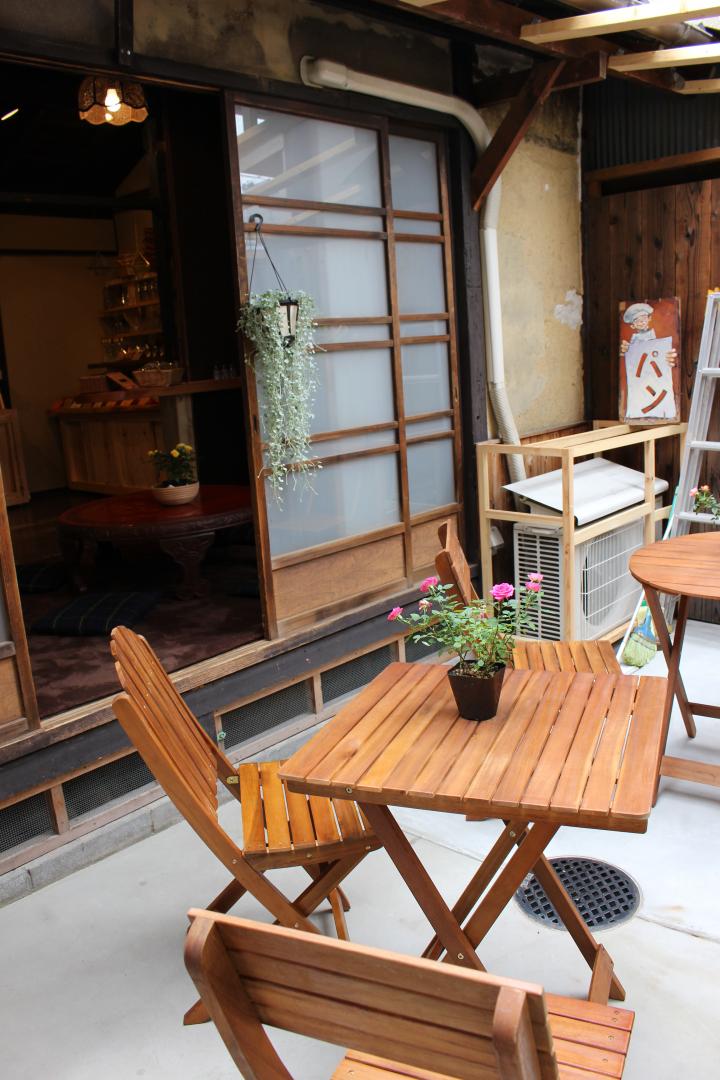 京阪・清水五条駅から五条通を東へ、老舗和菓子店「五建ういろ」の角を曲がって北へ歩くこと約5分。「大黒湯」横の細い路地を入ると「あじき路地」があります。 明治時代末期に建てられ100年ほどの時を静かに刻んでいる町家長屋で、若い作家さんが焼き菓子や帽子、照明など、ものづくりをしながら暮らしています。これまでお店が開かれるのは週末だけでしたが、フランス人のパン職人ヴィンセントさんと元パティシエールの奥様がこの路地を訪れる人たちのくつろぎスペースになればと、初めて平日にも営業するカフェをスタートしました。 “南1”の建物が「日曜日のパン屋さん」です。