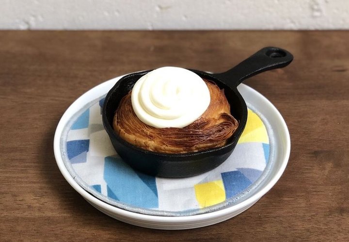 「クロワッサンシナモンロール」(ドリンク付き/1000円)。鉄板の下はcocca制作