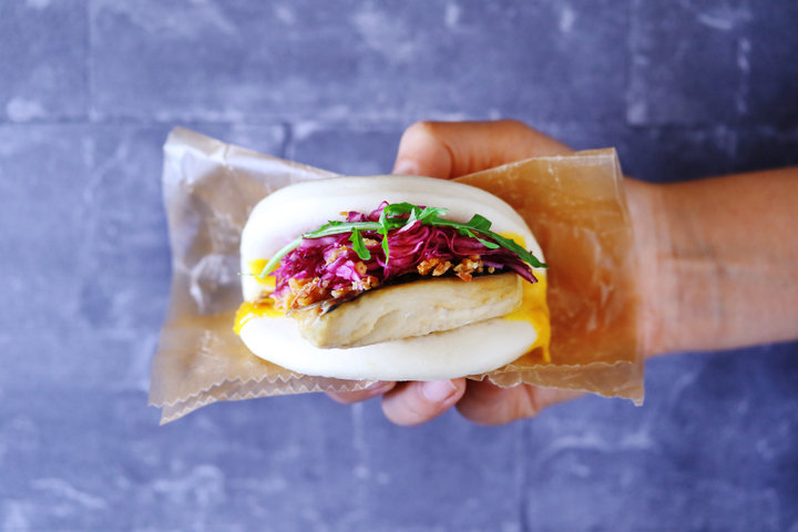 タピオカドリンクに合うさまざまなフードも提供しています。ちょっと小腹がすいたときにおすすめなのが、3種類あるグリルドパオ。「スパイシーCava?サンド」(520円)は、ジューシーなサバを挟んだサンドイッチ。特製カレーとマヨネーズのスパイシーソースが食欲をそそります。