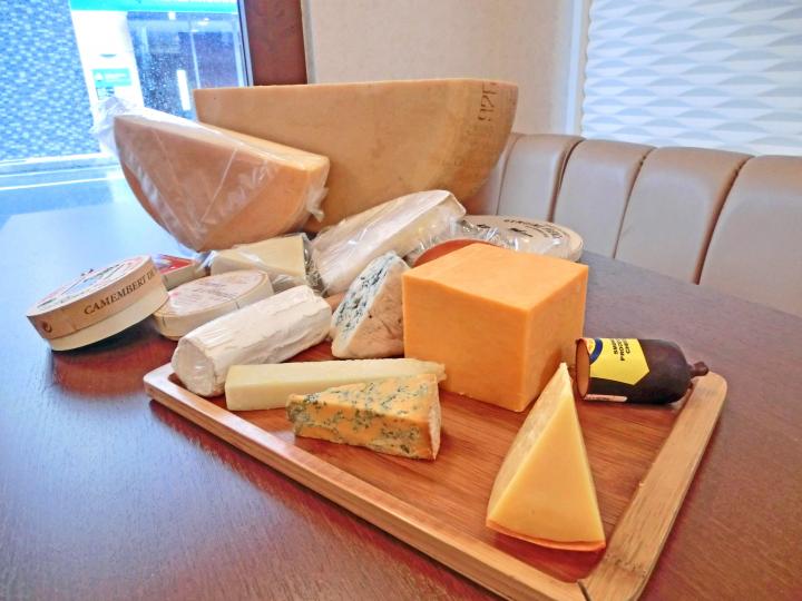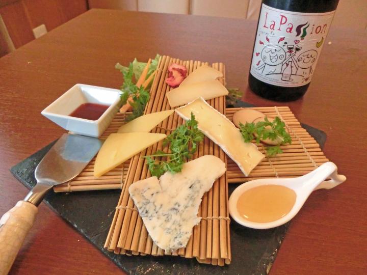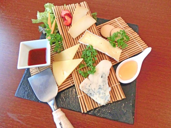 専門店だけあって、チーズの品ぞろえが豊富です。6大チーズと呼ばれるフレッシュ、白カビ、青カビ、ウオッシュ、シェーブル、ハードをメインに、国産やフランス産、スイス産など週替わりで20種類前後のチーズがそろっています。 もちろんそのまま食べてもおいしいのですが、オーナーシェフの緒方さんはさまざまな食材との組み合わせを提案。 「本日のチーズとフルーツのマリアージュ」では、リンゴやラズベリー、ジャムなどを添えて出しています。フルーツのほどよい甘みと酸味でチーズ独特のくせがやわらぎ、さらにおいしくなるそうです。