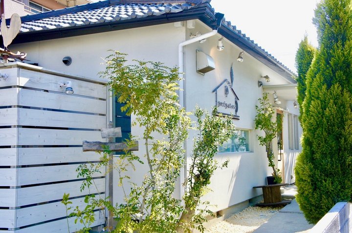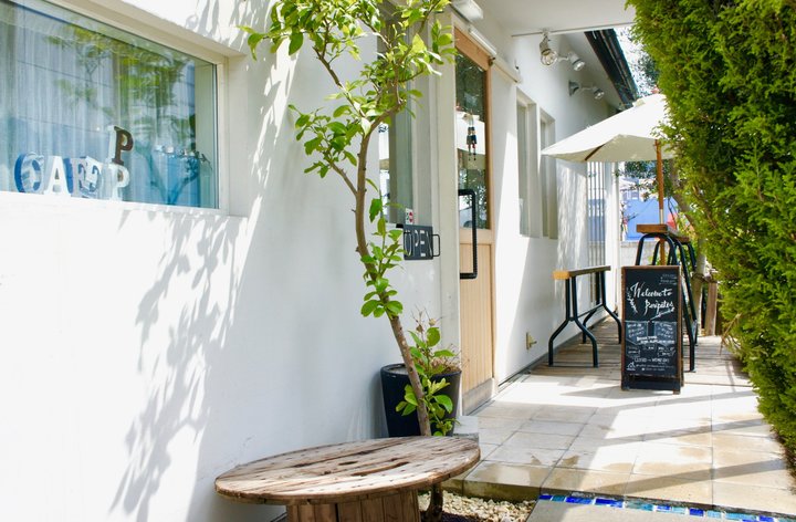 愛知環状鉄道の中岡崎駅から徒歩約7分。国道248号線から1本北へ入った道沿いにある白い建物がペリパトスです。中に入ると黒板アートやおしゃれな家具、雑貨など、わくわくするようなインテリアが広がっています。店内はカフェ利用のお客さん専用となっています。