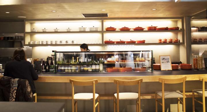 店内には道産食材を感じるディスプレイと「ル・クルーゼ」がさりげなく並ぶ