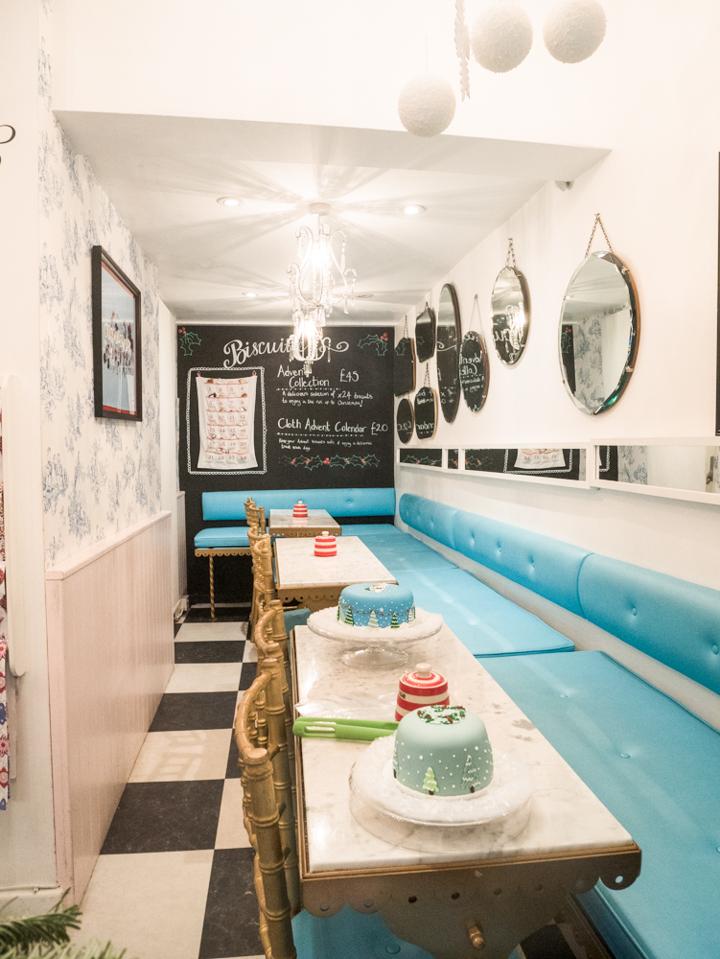 店内に入ると、ちょっとレトロなインテリアのなかに、かわいいビスケットがあちこちに陳列されています。ビスケットは、色とりどりにデコレーションされたアイシングビスケットが中心です。