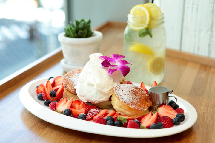 目にも美味しいフルーツ盛り沢山の絶品パンケーキ