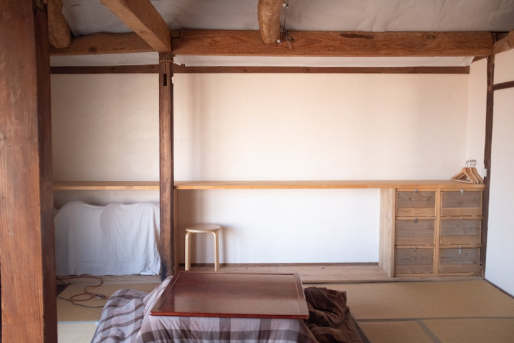 古い一軒家をリノベーションして作られた「ネドコロ ノラ」は、1階がフロントと共有のキッチンとリビング、2階がお布団を敷いて寝られる畳のスペースになっています。 畳の部屋には自分専用の布団があって、自分で敷いて過ごすスタイルです。もちろん、初対面の人と一緒になることもあるのですが、それは偶然の出会いも楽しめるということ。 たまたま同じ日に宿泊していた人と仲良くなって、今後も交流が続くなんてことがあるかもしれません。