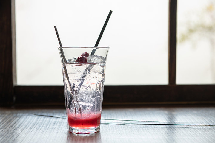 爽快な「木いちごソーダ」648円。ほんのり甘酸っぱい人気のメニュー。