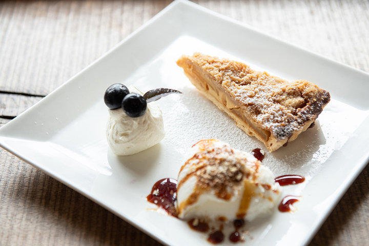 地元のフルーツを使った「果実のタルト」ドリンク付きで1080円。この日はりんご。
