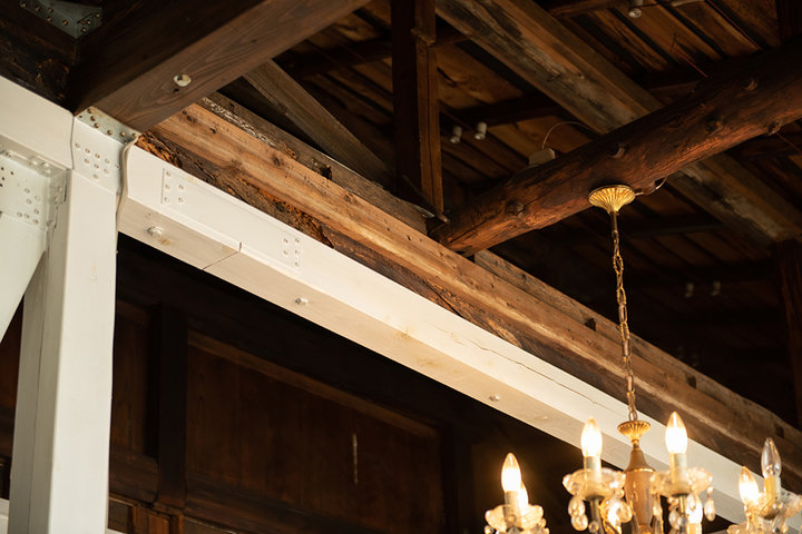 年季の入った梁と新しい構造がナチュラルに融和している。