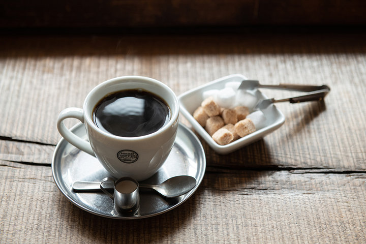 ステンレスのソーサーで供されるコーヒー。この質実剛健さがいい。