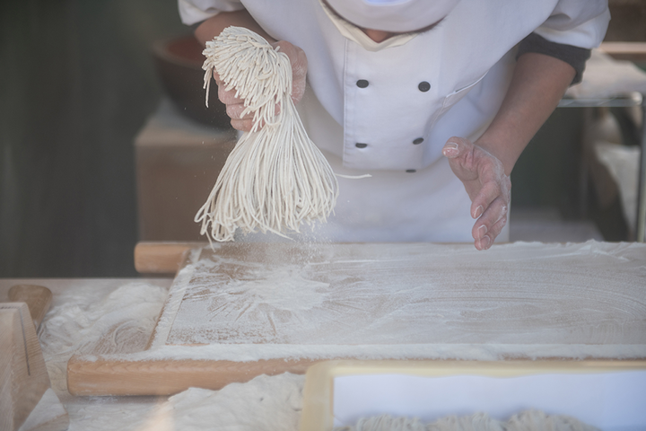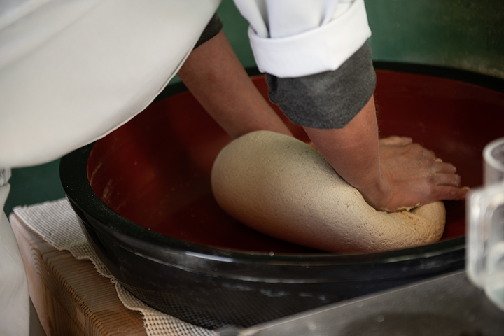 元パティシエという細やかな感性を生かし、そば粉を練ってゆく。