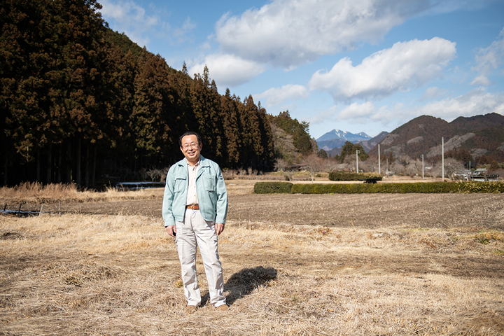 星野氏の後ろに広がるのは蕎麦の畑。初夏は蕎麦の白い花でいっぱいになるという。