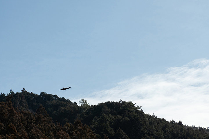 取材中、見かけたのはノスリだったか? 悠々と空を旋回していた。