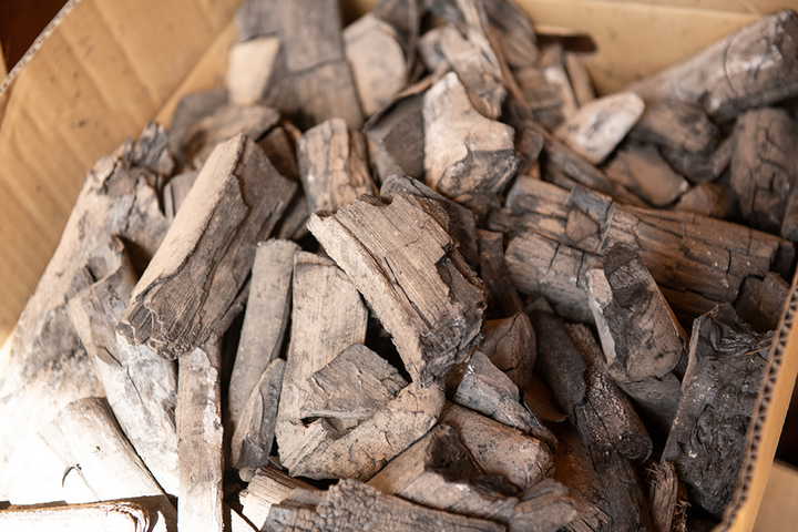 試作品の炭。全て手作業のため、形や大きさはバラバラだが、燃焼時間は抜群。