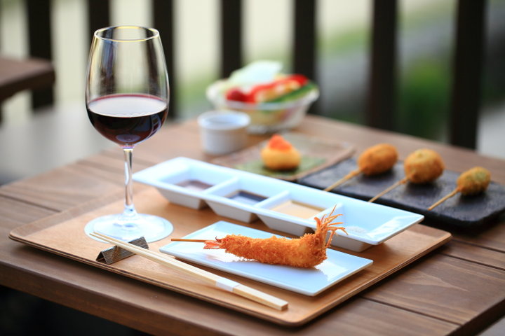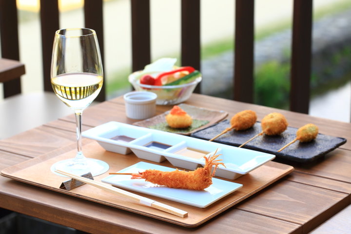 夏の風物詩、鴨川の納涼床ごはん!ワインと一緒に楽しむスタイリッシュな串カツ専門店