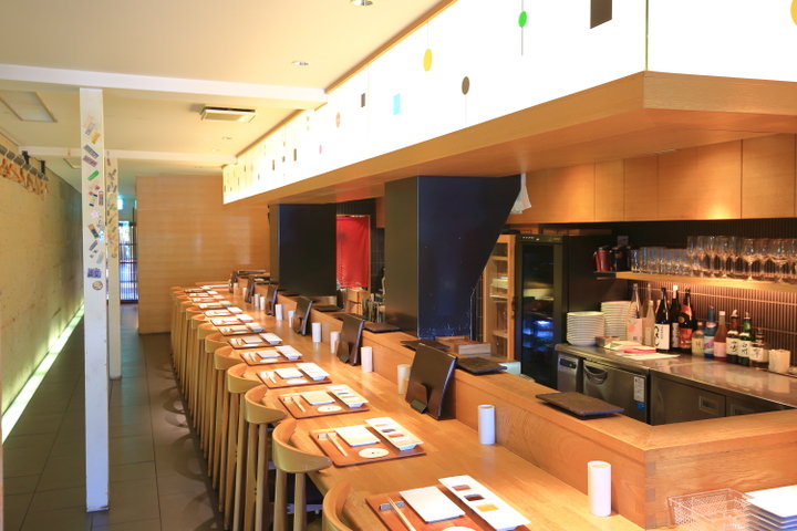 お店は五花街のひとつ、先斗町にたたずみます。伝統的な京町家にかかるのれんをくぐるとカウンター席があり、さらに奥に床席が設えられています。店内にはジャズが流れ、落ち着いた雰囲気が漂います。