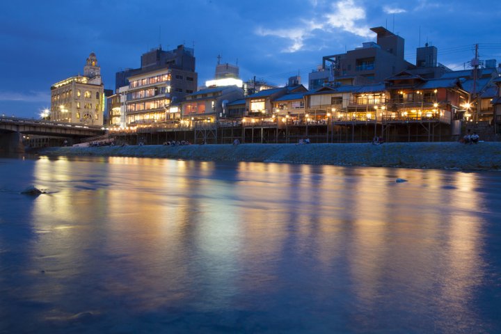 床は鴨川西隣のみそそぎ川の上に建てられる