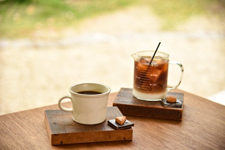 店名にも入っている珈琲は、静岡県浜松市の「コーヒー屋ポンポン」と、名古屋市の「ペギー珈琲」の豆を使用しハンドドリップで提供。また、地元岡崎市の「宮ザキ園」のほうじ茶を使用した「ほうじ茶ラテ」も人気です。