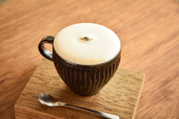 ほうじ茶ラテ(500円)。無農薬有機栽培のほうじ茶を使用
