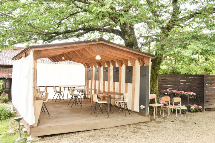 敷地内にある大きな桜の樹の下には、ペットとも一緒に楽しめるテラス席も。春は桜が満開になり、お花見も楽しめます。天気のいい日には、ぜひテラス席でのんびり過ごしてくださいね。