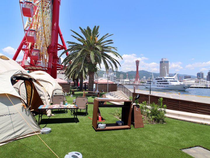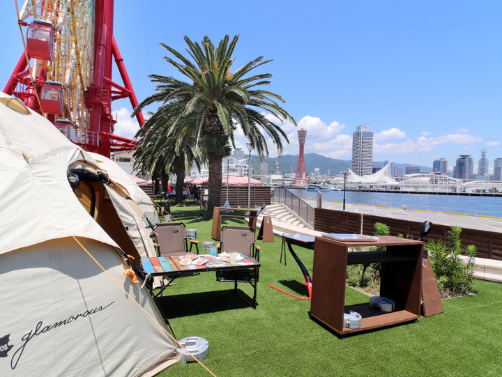 神戸ハーバーランドに期間限定でバーベキュー場「URBAN BBQ(アーバン バーベキュー)~神戸ハーバーランド~」が登場。高浜岸壁をはさんですぐが神戸港の海という、潮風感じる抜群のロケーションが自慢です。アウトドアブランドLOGOS(ロゴス)のテントやBBQグッズが完備され、グランピング気分も楽しめます。
