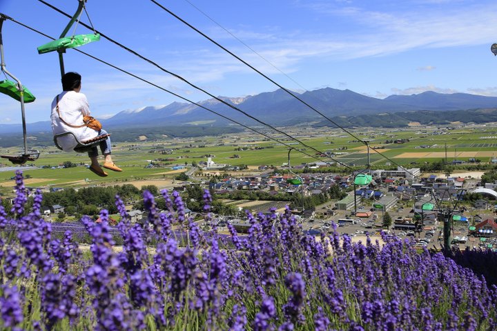 夜の花火大会では、多彩な演出にも注目。花火と音楽のコラボをはじめ、中富良野の澄んだ夜空を彩る紫色のラベンター花火は、風情たっぷり。音の演出と美しく打ち上がる大輪の花に、情緒あふれる花火見物が楽しめます。 実は冬には、スキー場になる花畑。ゆっくりと進むリフトに乗りながら花畑を眺められるのは全国でここだけ。山の斜面に咲き誇る中富良野のラベンダーから、元気をチャージしに行きませんか。