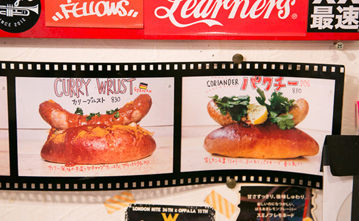 ほかにも、カリー風味のザワークラウトに自家製カリーケチャップをたっぷりかけた「カリーブルスト」や、レモンが爽やかな「パクチードッグ」など、どれも気になるホットドッグのメニューがずらり。さっそくいただきましょう!