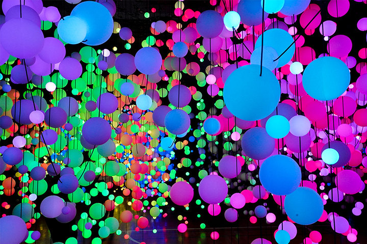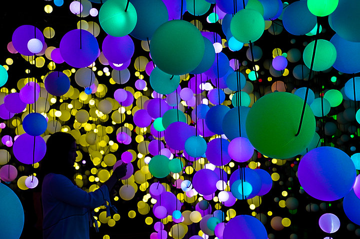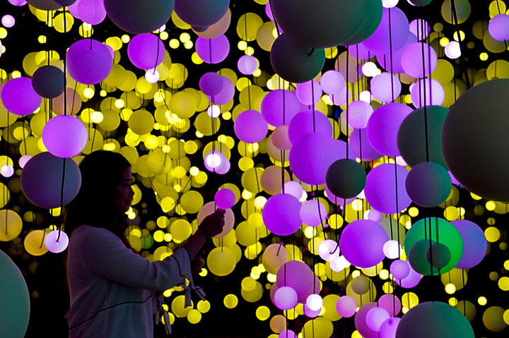 注目は、約1万個の水玉(ドット)でつくられた天の川を、大切な人同士が出会うことによって光り輝かせることができるインタラクティブイルミネーションです。 入口で渡された「水玉」を持って、展示室内に入ると、そこには一面幻想的なアート空間。 手にした「水玉」の光に反応して、周りの光も同じ色に変化していくので、まるで天の川へと世界が広がっていくかのよう。立ち止まると「水玉」の光の輝きも変化しますよ。