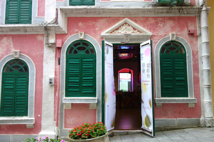 大田区の半分ほどの広さのマカオ。世界遺産に登録された「マカオ歴史市街地区」の「聖ポール天主堂跡」を少し下ったところにあるのが「戀愛巷」という名の小径です。通称「恋愛通り」にはパステルカラーの可愛らしい建物が並びます。この通りでひときわ目を引くピンクの洋館が映画をテーマとしたミュージアムになっています。