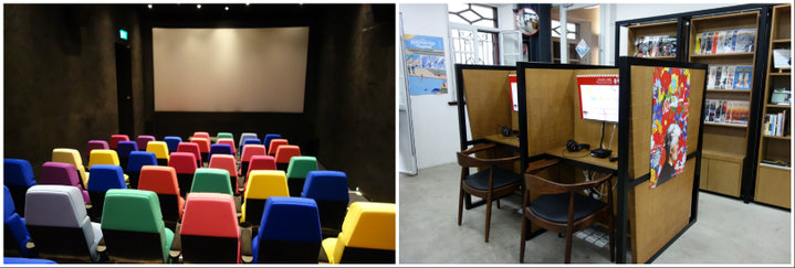 ミュージアムの名前は「戀愛・電影館(シネマテーク・パッション)」。カラフルな座席が並ぶミニシアターでは毎週末、世界の映画を上映するイベントが催されています。資料室では映像の視聴ができるほか、日本の人気映画のワンシーンを再現したコーナーで記念撮影ができます。