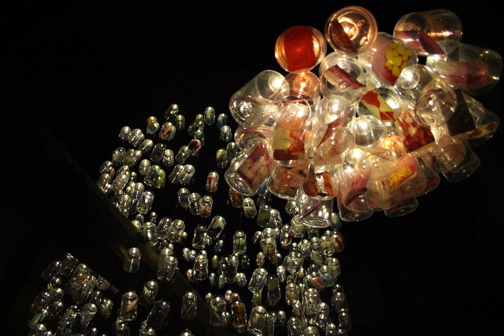 小さな古い蔵の中に展示されているのが「記憶のボトル」。暗い建物の中には、小さな光が灯った数多くの瓶がつりさげられています。この瓶のひとつひとつの中には、島で見つけたものや島の人びとの思い出が込められています。そんな本来は目に見えない大切な記憶を可視化するというアート作品です。