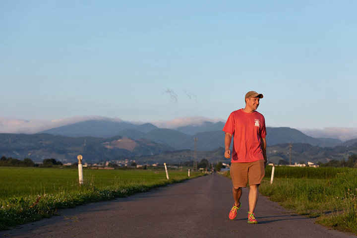 妻、娘と暮らす自宅から自社農園までは、車で数分の距離。田んぼと畑に囲まれた一帯は、バーンズ氏が毎朝犬と歩くお気に入りの散歩道でもある。