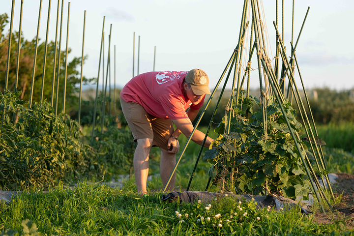 2018年から始めた平川市の自社農園では、無農薬で野菜を栽培。『アジト』の料理に利用する。カスケードというアロマ系ホップも育て、収穫祭も行った。