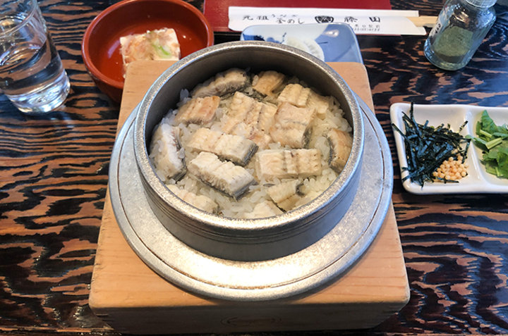 今回の記事中での一番の目玉は、何と言ってもインパクト大なそびえ立つかき氷。しかし下山したら、疲れた体がガッツリごはんを求める人もいるのでは? そんな時おすすめしたいのが、京王線『高尾』駅徒歩すぐの『藤田』さん。なんとここでは、とっても珍しいうなぎの釜めしが頂けます。