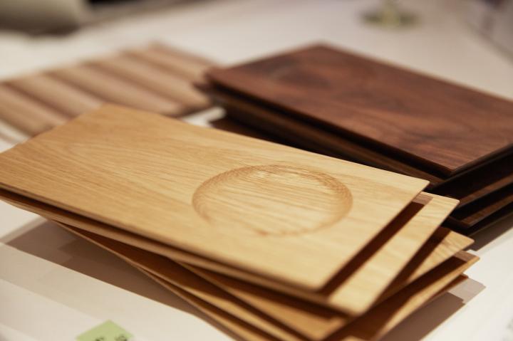 くねくね曲がる木製のジャバラを扉に使った、ジャバラの小箱(5万9400円)は、長野県松本市で木製家具や小物のデザイン・製作を手がける工房「solnte(ソルンテ)」によるもの。毎日の暮らしの中に木の温かみをプラスできるよう、木の表情や木目の美しさを生かした、シンプルなデザインが素敵です。箱の上にある板は付属のパントレイ。まな板としても、箱の中の仕切り板としても利用できます。 左のカッティングボード(各4050円)は、明るいイメージのナラ材のものと、シックなウォールナット材を使ったものがあります。使い込むほどになじんで、愛着のある一品に育ってくれそうです。