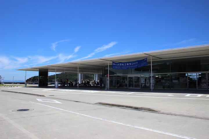 直島の玄関口・宮浦港のフェリーターミナル「海の駅 なおしま」。こちらの建物も瀬戸内国際芸術祭の作品のひとつです。 薄い鉄板で作られた広々とした屋根を、細いポールが支えるシンプルな構造。開放感あふれるデザインの平屋で、観光案内所やカフェ、特産品の販売所などがこの建物の中で営まれています。島を訪れる旅行者たちのためだけでなく、住民たちの生活に根ざした交流拠点になっているところが特徴です。