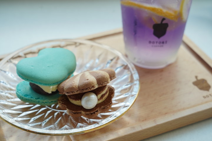 代官山にあるマカロンとドリンクが味わえる専門店「DOTORI(ドットリ)」。フォトジェニックな形とボリュームたっぷりのマカロンは一度食べたらとりこになること間違いなし。美しいグラデーションの「オーロラ」や、ふわふわのトッピングフォームがたまらない「晴空」など個性的な名前のドリンクにも注目です。