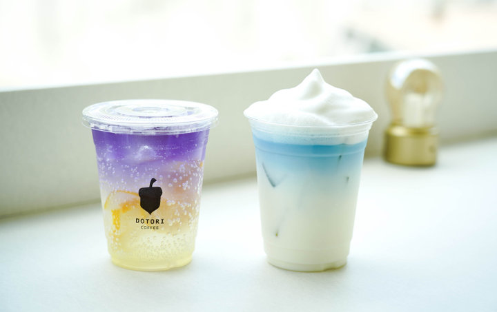 また、グラデーションが美しいドリンク「オーロラ」550円(税込)も人気です。青いハーブ「バタフライピー」を使った爽やかなレモンスカッシュで自家製レモンピールがトッピングされています。ほかにも抹茶ドリンク「青い森」550円(税込)など見た目からイメージされて名づけられた個性的な名前もかわいいですね。