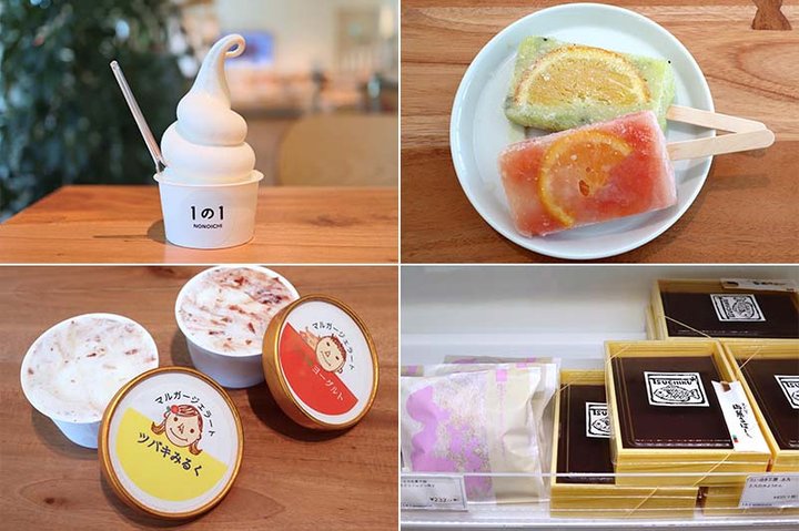 季節ごとにフレーバーが変わるソフトクリームをはじめ、カップアイス、アイスキャンディー、どらやき、水ようかんなど地元の人気スイーツが一堂に楽しめます。 市民ボランティアグループ「e-やん」と「マルガージェラート」が共同開発した「1の1 NONOICHI」限定の「e-やんジェラート」は、野々市市の市花木である椿の花びらのジャムが使われています。人気のフレーバーは早めに売り切れるのでチェックしてみてくださいね。