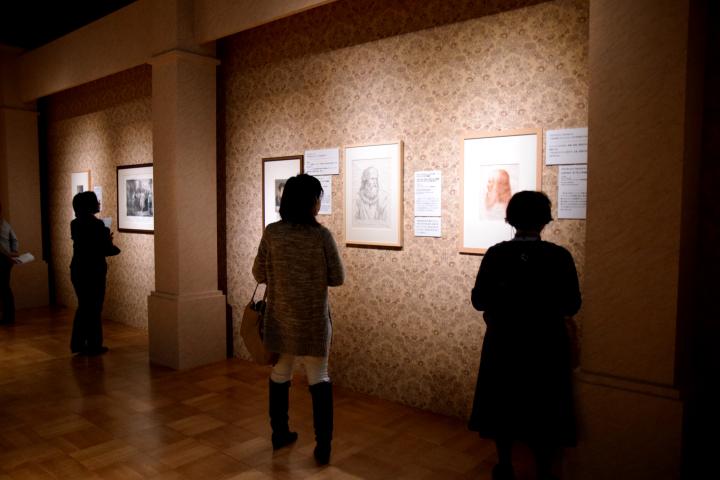 レオナルド・ダ・ヴィンチというと、たいていの人は髭がモジャモジャと生えた老人の姿を思い浮かべるのではないでしょうか。でも、それは晩年の姿。若いころのレオナルドは美少年で有名でした。 展覧会のスタートは、そんなレオナルド自身の容姿と生涯にフォーカスを当てます。 “自画像を描く人は本人も優美さをもっているもの”という考えを持つレオナルドは、身だしなみにも気をつけていたよう。絵や彫刻のモデルもつとめていました。 そんなレオナルドはどんな人物だったのでしょうか?書籍の挿絵や版画からひも解いていきます。