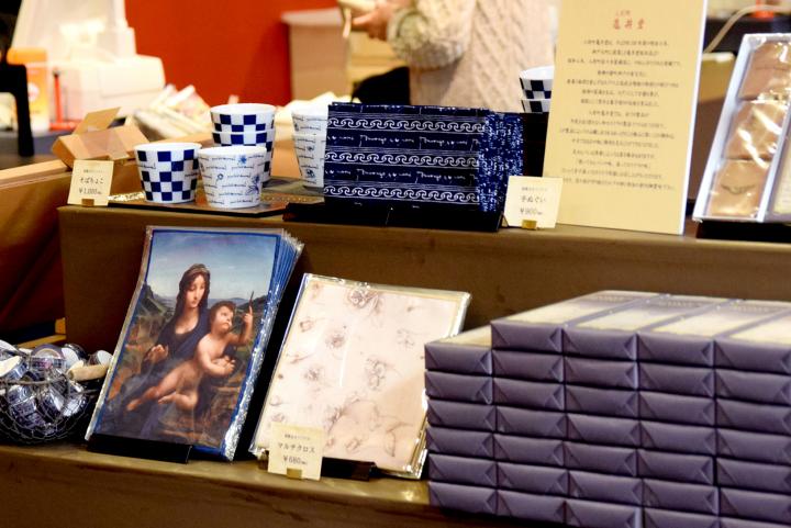 最近の展覧会はオリジナルグッズの豊富さが魅力です。今回も会場限定のグッズがよりどりみどり。 『鳥の飛翔に関する手稿』や素描《花の研究》をモチーフとした折り紙には、レオナルド独特の鏡文字やスケッチがデザインされています。