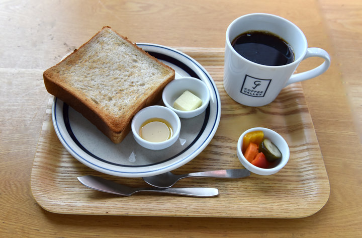 軽く朝食を、というときにぴったりなのが、「TOAST」(400円・税込)です。「Today's Coffee」(470円・税込)などのコーヒーと組み合わせていただきましょう。江古田の有名ベーカリーカフェ、パーラー江古田に依頼して試作を重ねたトーストは、こんがり焼いたもちもちのパンで小麦のうまみが感じられます。添えられた春日養蜂場のハチミツは、風味豊かで濃厚な味わい。自家製ピクルスの色が目に鮮やかです。 「Today's Coffee」などに使用する豆は日替わりで、この日はブラジル。酸味は少な目ながら、味のバランスがとれていてコクがある、飲みやすいコーヒーです。