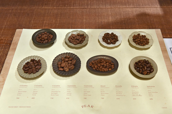 豆から選びたい、というちょっとツウな人には、1階奥のカウンターで淹れてくれる「PEAK」(各600~800円・税込)がおすすめです。サンプル豆やフレーバーを参考に豆を選び、ハンドドリップまたはフレンチプレスのどちらかを指定します。 自家焙煎の豆を使い、しっかりと温度管理をしながら、丁寧に淹れてもらうコーヒーの味わいは格別です。