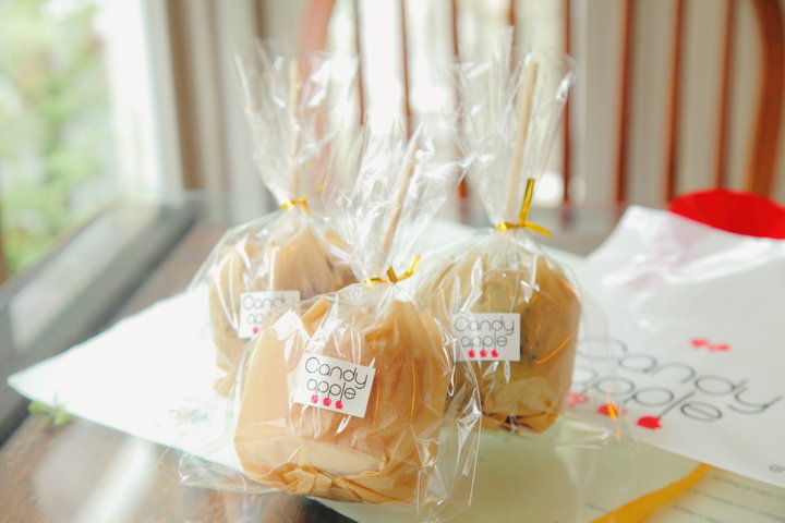 テイクアウト用のりんご飴(600円/税別)。手みやげやプレゼントにも喜ばれそう