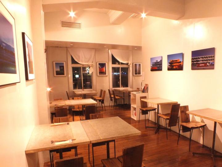 白壁をギャラリーにして、写真や絵画が展示されることも